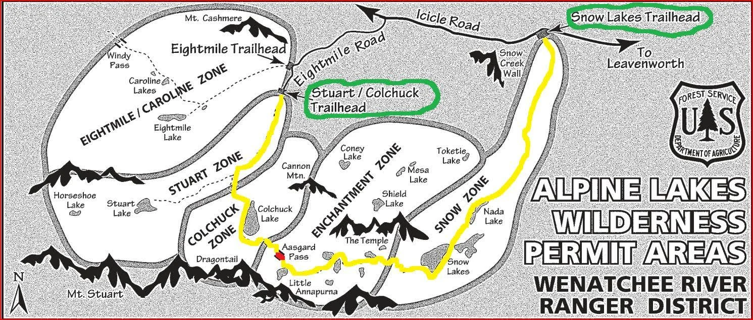 Winning a permit to hike the Enchantments feels like a winning lottery ticket for the adventurous. In the Alpine Lakes Wilderness, these chain of lakes are heavily protected. With thousands of applications, you never know when the golden ticket will come your way, as winning is rare. I was lucky enough to be invited for a Summer Solstice trip into the Core zone. With a core permit you are allowed to camp in any of the five zones, where Eightmile/Caroline, Stuart, Colchuck, Enchantment, and Snow permits limit you to camping only in that zone. Designated camp spots and toilets are located throughout this wilderness, so please abide by all permit rules and use them.