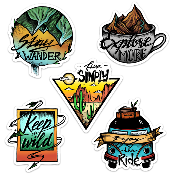 Turn your water bottle, laptop, or car into a work of art! These full color stickers are die-cut from waterproof vinyl, so you'll never have to worry about fading or peeling. Inspired by the outdoors, made for the WILD!