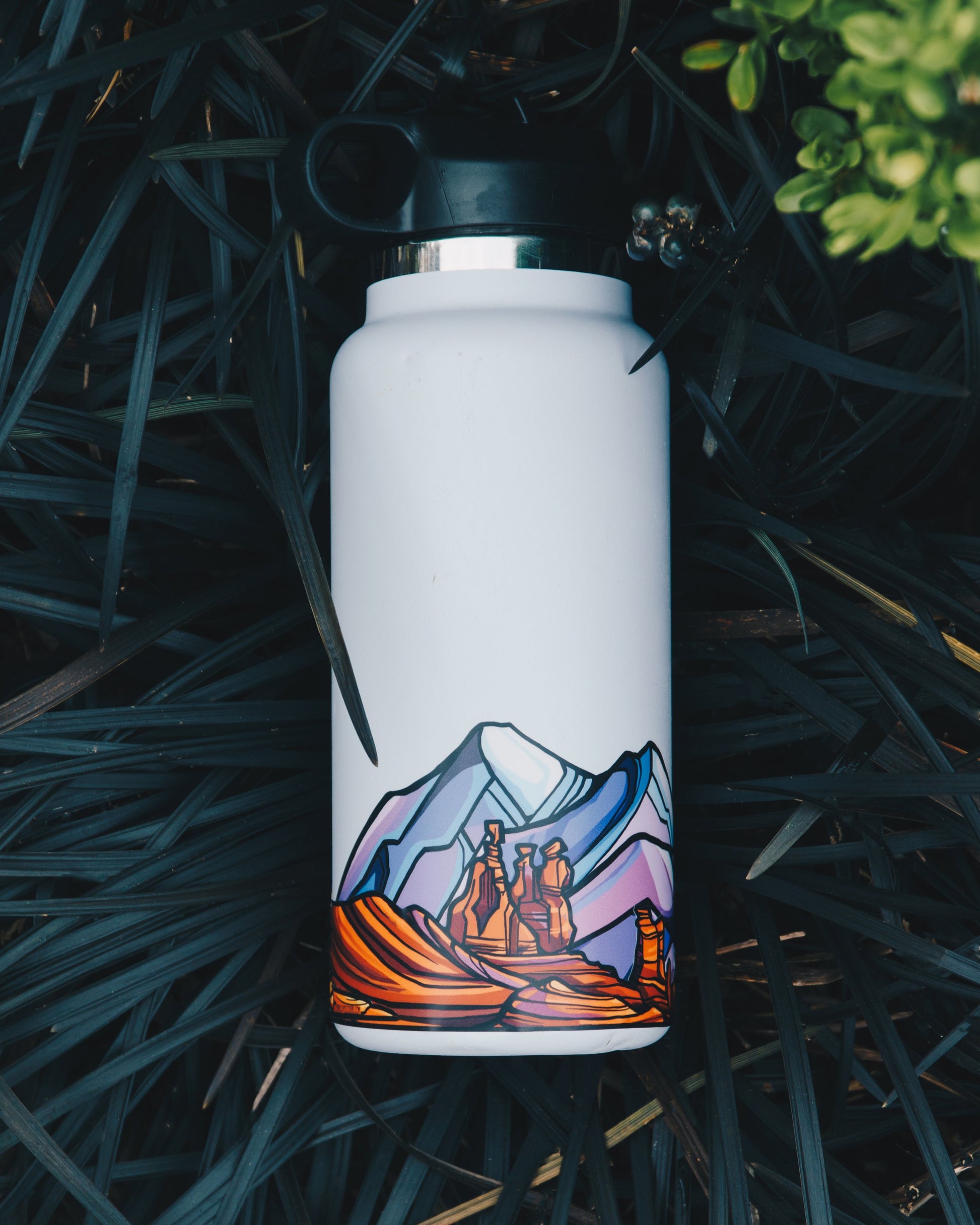 Arches is a landscape filled with contrasts, from the red and orange rock formations flowing against the blue sky to purple peaks in the distance framed by sandstone archways. It is these natural contrasts of color and pattern that make this sticker one of our favorites! Arches is on Ute land.